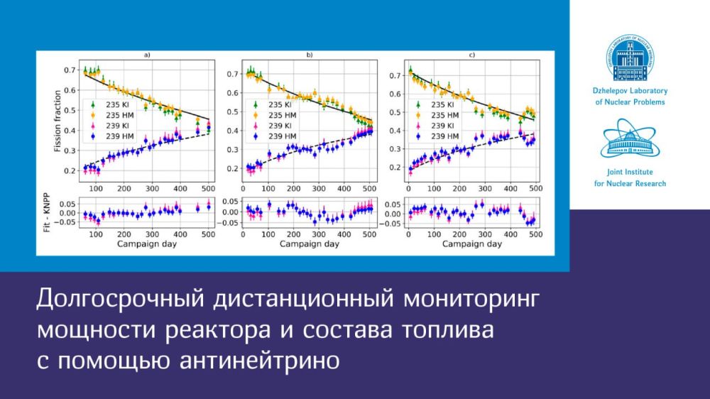В июле 2025 г. в журнале Physics Letters B вышла новая статья Long term remote reactor power and fuel composition monitoring using antineutrinos, посвящённая результатам семилетних измерений потока антинейтрино от ядерного реактора на Калининской АЭС в эксперименте DANSS. Сотрудники ЛЯП ОИЯИ играют ключевую роль в эксперименте, начиная от разработки первых прототипов детектора, заканчивая обеспечением описанных долговременных измерений на Калининской АЭС.